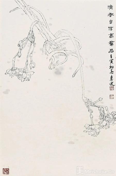 王来文先生的白描花鸟画作品上接吴道子、李公麟、陈老莲气脉,下承福建画坛先贤上官周、陈子奋、郑乃珖意韵,入古出新,博采众长又自出机杼,把闽南风物中寻常的花卉画得不平常,从点画用笔的厚、留、圆、朴、苍、润、变,到别出心裁的构图,到线质既干裂秋风又润含春雨,到写生作品的精神人格化表达,这些外师造化中得心源的融通慢慢形成了王来文先生自己清奇典雅的作品风格特色。从他的作品里边,我们能够深刻感受到他的白描作品高于生活和技进乎道的艺术境界,其韵外之致、味外之旨,颇堪细品。他的书法作品,深入传统,以张迁、好大王、礼器等隶书名碑为宗,得其神韵,偶参汉楚简,结体用笔朴拙灵动,线条沉着浑厚,自然书写,若不经意实经意之极,既有法度,又见性情,集雄浑和雅致于一体。他的水墨设色花鸟作品,荷塘系列,空灵潇散,如无声之音乐,画有尽而意无穷。春光系列,酣畅淋漓,水、墨、色、线自然交融而浑为一体。色彩润泽,如观美玉,画面朴实,生机勃勃,一派万紫千红总是春的景象,穆如清风,令人心向往之。