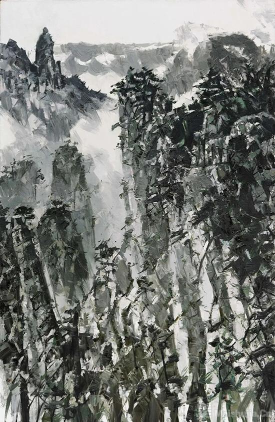 近年来,许江集中着眼于油画的山水创作。他笔下的山,并非飘渺之“彼山”,而是扎根于江南土壤、呼吸于时代风雨的“此山”。在江南群山的语言中,捕捉天地应和、追怀逝水流风、兴发时代激情,最终铸炼成一种充满东方情怀的山水之诗。