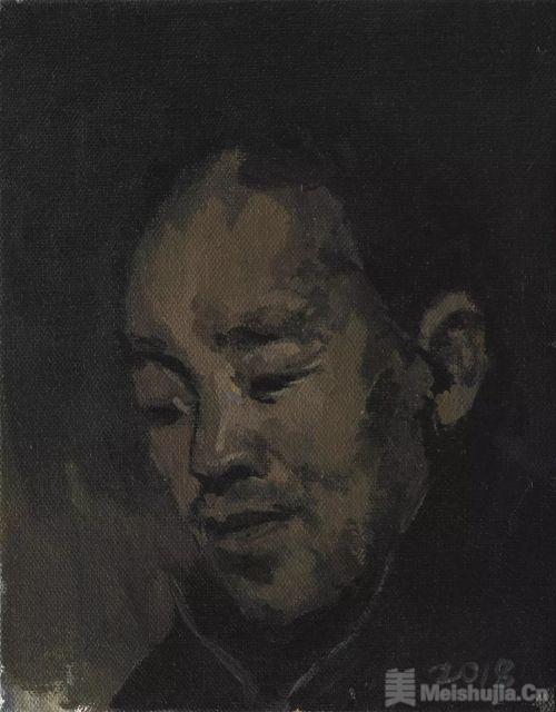 其一是关于故乡叙事。蒋建军离开故乡已二十多年,虽然其间他偶尔回到故乡,但是他已然意识到,自己离故乡越来越远。二十多年,时过境迁,物人皆非。于是,他希望通过绘画的方式建立与故乡的新关系。他画了一系列亲人和乡邻的肖像。这些肖像被置于深色的背景中,就像伦勃朗时代的肖像一样,但他用更简洁的笔触去极尽人物的质朴特征。其中的风景作品,是他基于故乡的环境而作为类型化的风景。某种意义上,这也是一种故乡的肖像,具有一种朴实的气质。然而,质朴与朴实不是对一个群体类型化的表现,而是艺术家作为故乡的远观者的情感表达。