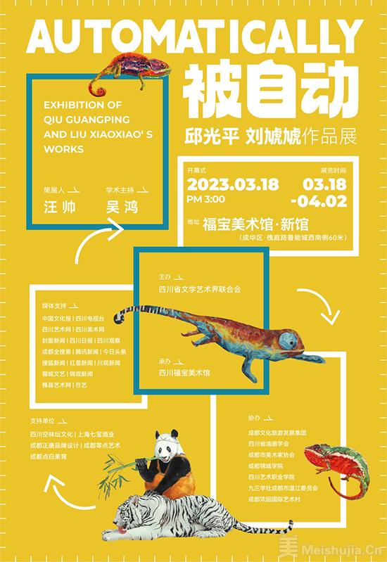 由四川省文学艺术界联合会主办,四川福宝美术馆承办,成都文化旅游发展集团、四川省油画学会、成都市美术家协会、成都锦城学院、四川艺术职业学院、九三学社成都市温江委员会、成都浓园国际艺术村共同协办,由中国当代艺术家邱光平和青年艺术家刘虓虓共同烹制而成的展览——《被自动》将于3月18日在四川福宝美术馆(新馆)举办。据悉,本次展览能观赏到中国当代艺术家邱光平经典的“马”图及青年艺术家刘虓虓笔下的“变色龙”作品。展览还将邀请著名策展人、艺术批评家吴鸿担任学术主持,汇聚名家共同品言,畅言后疫情时代之光。