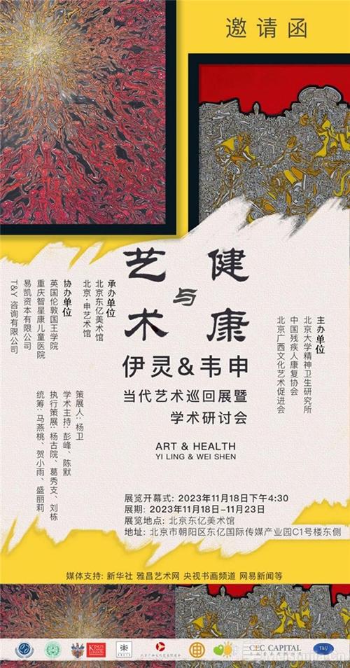 “艺术与健康”系列学术活动由知名评论家杨卫与艺术家韦申、伊灵先生,联袂北京大学精神医学领军人物于欣教授、知名精神心理专家马燕桃教授,共同举办。本次展览以“艺术与健康”伊灵&韦申双个展暨学术研讨会为主题,是一次艺术精神方面的高端研讨活动。韦申的“潜意识“绘画与伊灵的抽象“涂鸦”绘画对心理健康的视觉影响,他们的作品是当下健康疗愈的最佳选择。