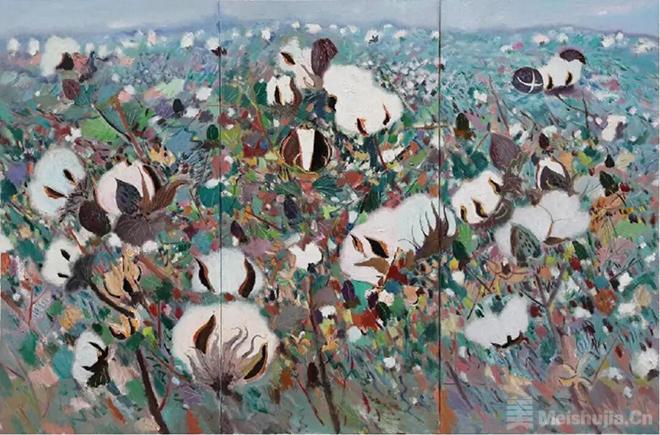 王克举是位坚持到自然风景里去不断研究艺术史与艺术创作的画家。他的所有画作几乎都是在山峦旷野、乡村田园收笔的,但这并不影响他对自然的艺术创造。他总是在自然里寻找心灵的镜子。因而,他在每一次面对山川、田野与森林时,都寻找着某种陌生的感动,也总是在这种陌生之中进行了色相、调子与结构的破坏与重组,以期呈现他对于自然的想象、对于心灵的摹写。他偏爱画雄浑峻伟的山峦、整齐碧绿的阡陌、紫白相间的棉花和粗壮结实的玉米,乡土情怀成为他重塑自然存于内心最深处的隐秘。因而,他画面的色块更厚重、笔触更方整、基调更淳朴。