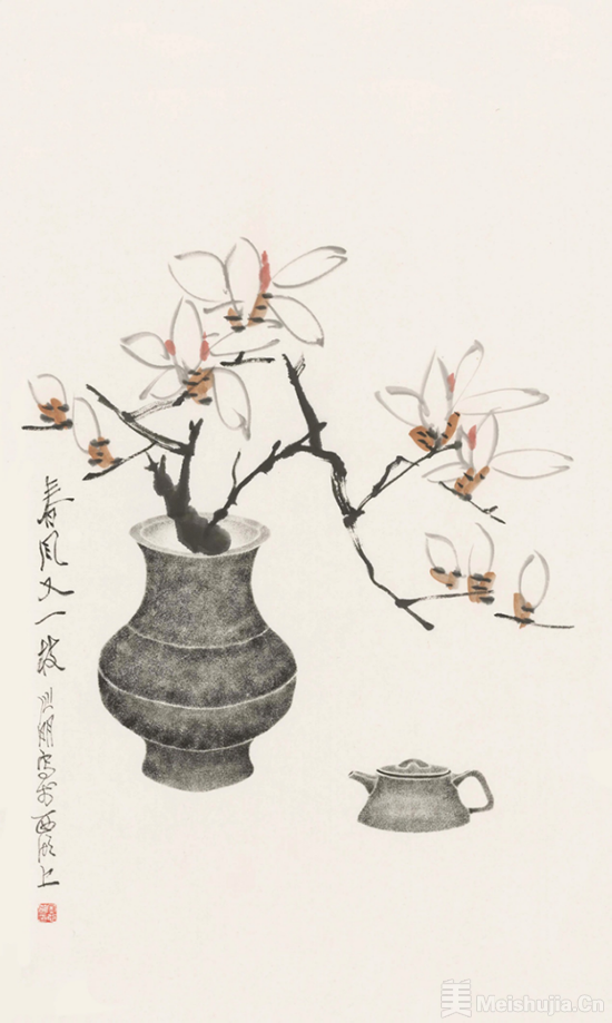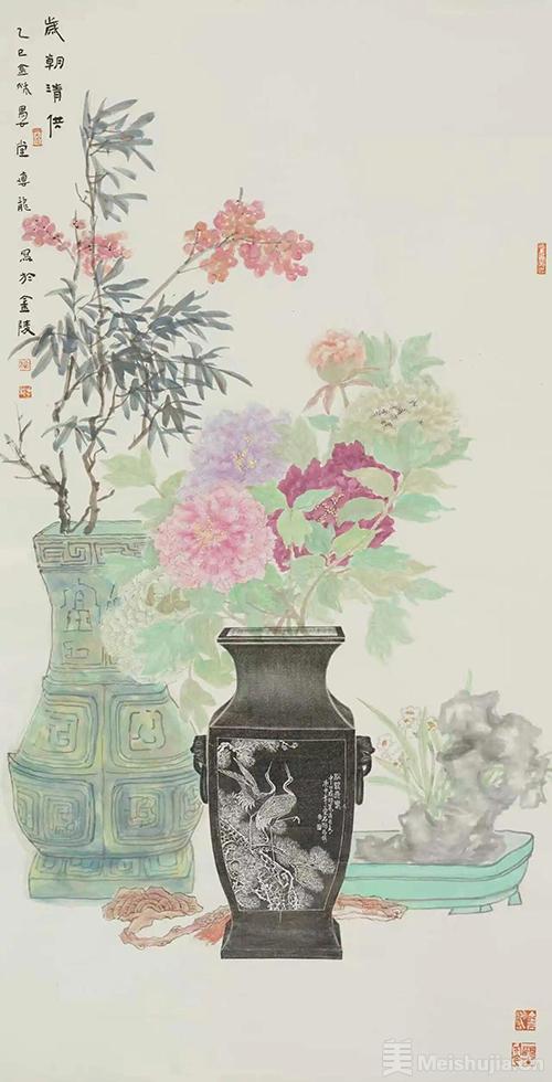 金心明的写意逸笔则承袭了江南文人画的空灵,其一直主张书画融合,发展文人书画艺术,主持的“西湖画会”影响日盛,以书画一体、闲适江南为表现内容,赋予拓片以灵动神韵。