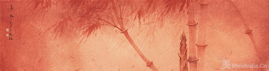 赵少俨深谙古法而自出机杼,此番聚焦朱砂这一传统矿物颜料,以炽烈之色破题花鸟画之清雅范式。朱砂牡丹摒弃富贵俗艳,于浓淡皴擦间透出金石铿锵;朱砂荷花脱离淤泥之喻,以赤色点染莲瓣,似月下浴火重生;朱砂竹枝更见奇崛,以篆籀笔法写潇湘风骨,绛色竹叶如剑如戟,暗合“未出土时先有节”的东方精神。此种色彩实验非止于视觉革新,实为对“墨分五色”传统的补白与延伸,在材质物理性与文人象征系统之间构筑新的美学路径。