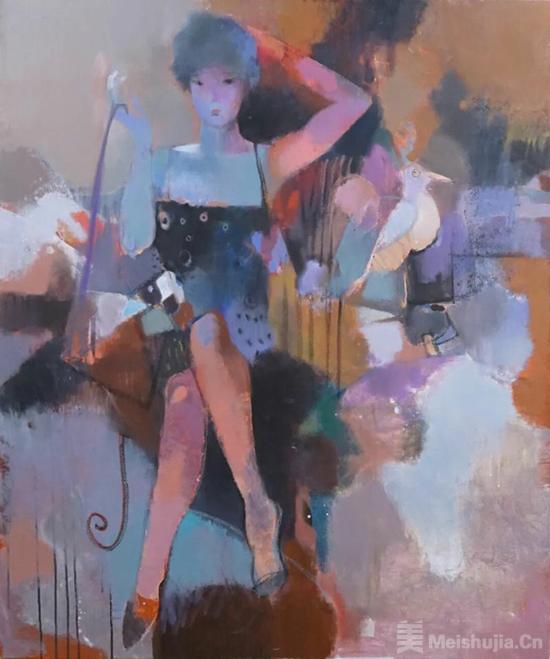 《叠城》所展出的作品几乎都是倪蓓蓓这两年在上海工作室完成的。相较以往,这批作品的下笔和色彩的干练显得更为果敢,也更为松弛。我们很容易猜测造成这种结果的原因:她在上海,不需要在作品中“讲点什么想法”、只需要在作品里“描述些自己的感受”;她也不需要冲着某些目标而面对作品,只需要延续自己的状态面对画面即可……因此她就放松、无谓,也就果断了——果断也意味着不讲究对错,只讲究做不做。