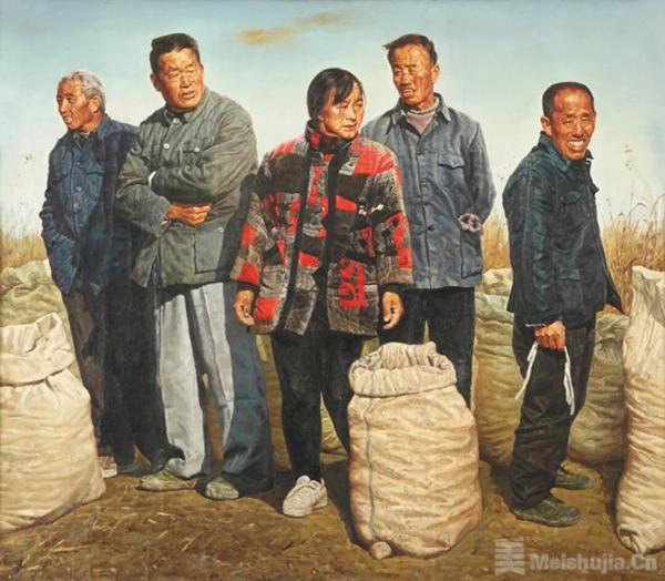 其作品最动人心魄的,是对平凡生命的平等凝视与尊严赋形。他的画笔既聚焦城市化进程里汗湿工装的建设者,也停驻边地高原上被风沙雕琢的面庞:风霜刻入的皱纹被视作生命的年轮,尘土覆盖的手掌被赋予劳作的荣光,就连休憩时遥望远方的沉默,都被定格为一种庄重的生命仪式。正是这份不带滤镜的真诚,让每一个平凡身影都在画布上获得了超越时间的重量。